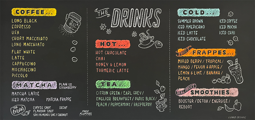 Along with our signature Boss Blend coffee, we offer a range of other hot & cold beverages including hot chocolate, FREE fluffy’s for your little boss and a selection of premium cold beverages.